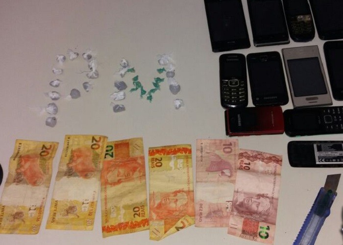 Em poder do menor os policiais encontraram 2 trouxinhas de substancia análoga a maconha que estava no bolso da bermuda do infrator. Com autorização do menor os policiais entraram na residência dele onde também encontraram 28 embrulhos, sendo 19 de maconha e 9 de substancia análoga ao crack, uma quantia de R$ 100 reais em dinheiro e 11 aparelhos de celulares sem as devidas notas fiscais.