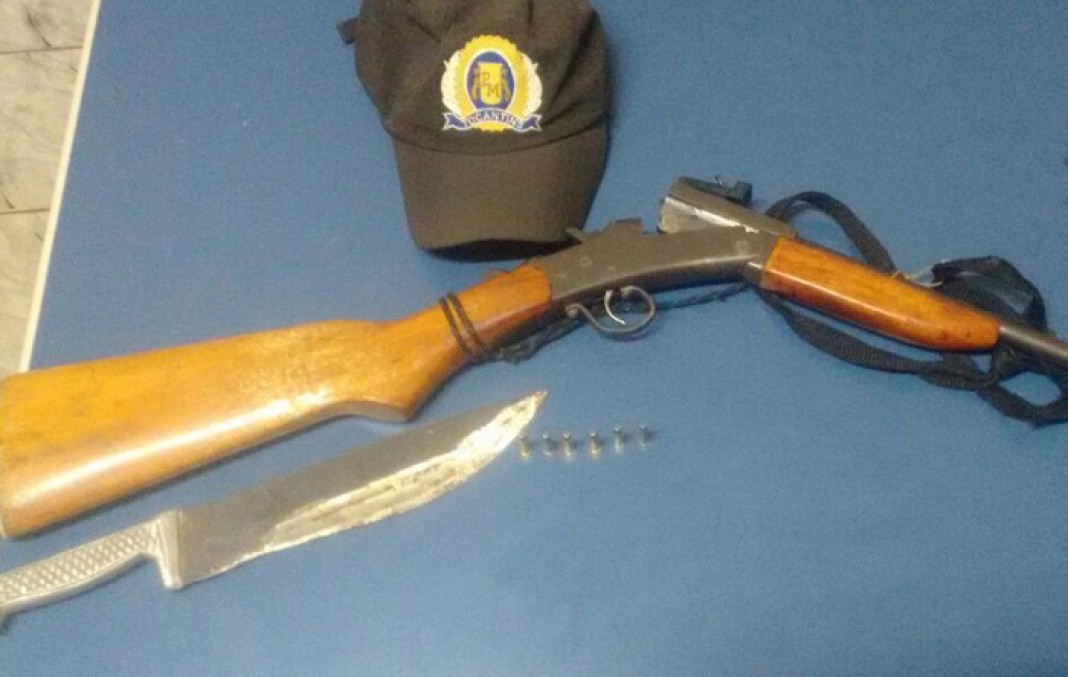 O lavrador transitava em uma bicicleta, quando foi abordado pela PM. Dentro de sua mochila os policiais militares encontraram uma faca, um aparelho celular LG, uma espingarda calibre 22, tipo arma caseira confeccionada a partir de uma 5.5 e seis cartuchos calibre .22mm, todos intactos.