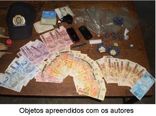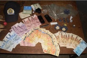 Ao chegarem ao local, foi realizada uma busca pessoal nos dois indivíduos, já no quarto do Diego a PM encontrou 45 gramas de crack, duas trouxinhas de maconha e vários plásticos cortados pronto para embrulhar a droga, 2 aparelhos de celulares e uma quantia de R$ 1.504,15 proveniente da venda dos entorpecentes.