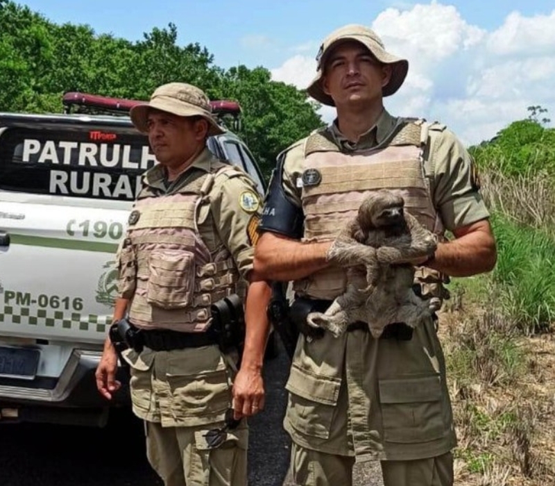 Na manhã desta quinta-feira, 17, equipe de policiais militares da Patrulha Rural (PR) do 9º Batalhão (9º BPM), evitou que um animal conhecido por bicho-preguiça fosse atropelado no momento em que tentava atravessar a BR-230, nas proximidades do povoado Água Amarela, em Araguatins, no Bico do Papagaio.