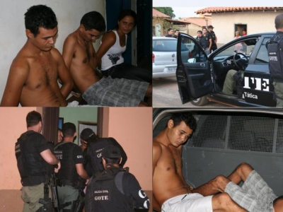 A equipe de policiais do Grupo de Pronto Emprego do Pará (GPE) e agentes do Grupo de Operações Táticas Especiais da Policia Civil do Tocantins (GOTE), cumpriu na manhã desta quinta feira, 29, em Araguatins, três mandados de prisão preventiva e três de busca e apreensão em desfavor de Catiane Santana Oliveira, conhecida por “Kátia ou Taiana” de 29 anos, Vagno Santana Oliveira, 26 anos, Hands Pereira Filgueria, vulgo “Zezinho”, de 27 anos. Os três são acusados de participarem de um seqüestro em Palestina, no
