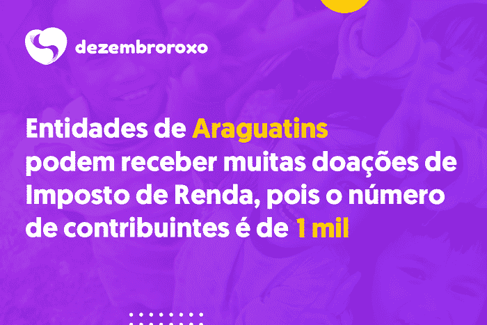 Foi com base nesses dados que nasceu a campanha sem fins lucrativos Dezembro Roxo, cujo objetivo é conscientizar os contribuintes de Araguatins e estimular as doações, que podem mudar o rumo do País, através de investimento de parte do IR que já iria para os cofres públicos.