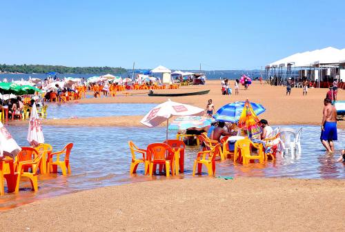 A estrutura praiana inclui área para camping, bares, restaurantes, comércio, além de policiamento e serviço de saúde 24h. O percurso à ilha é feito em canoas (voadeiras), em 05 minutos, e custo de R$4,00 ( ida e volta) e R$3,00 (rabetas).