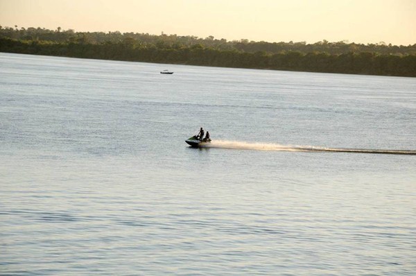 Os aventureiros aproveitam as águas do Rio Araguaia para manobras com motoaquática