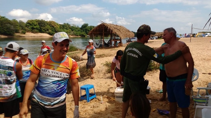 Já no sábado, 14, com o auxílio de Policiais Militares do Batalhão Ambiental de Araguatins, foi a vez de visitar a Praia do Noronha, onde a equipe também realizou coleta seletiva de resíduos sólidos (lixo) na praia. Segundo relato do Professor Fábio Amado, percebeu-se uma evidente melhora na postura dos banhistas em relação ao cuidado com o lixo produzido nas praias de Araguatins.