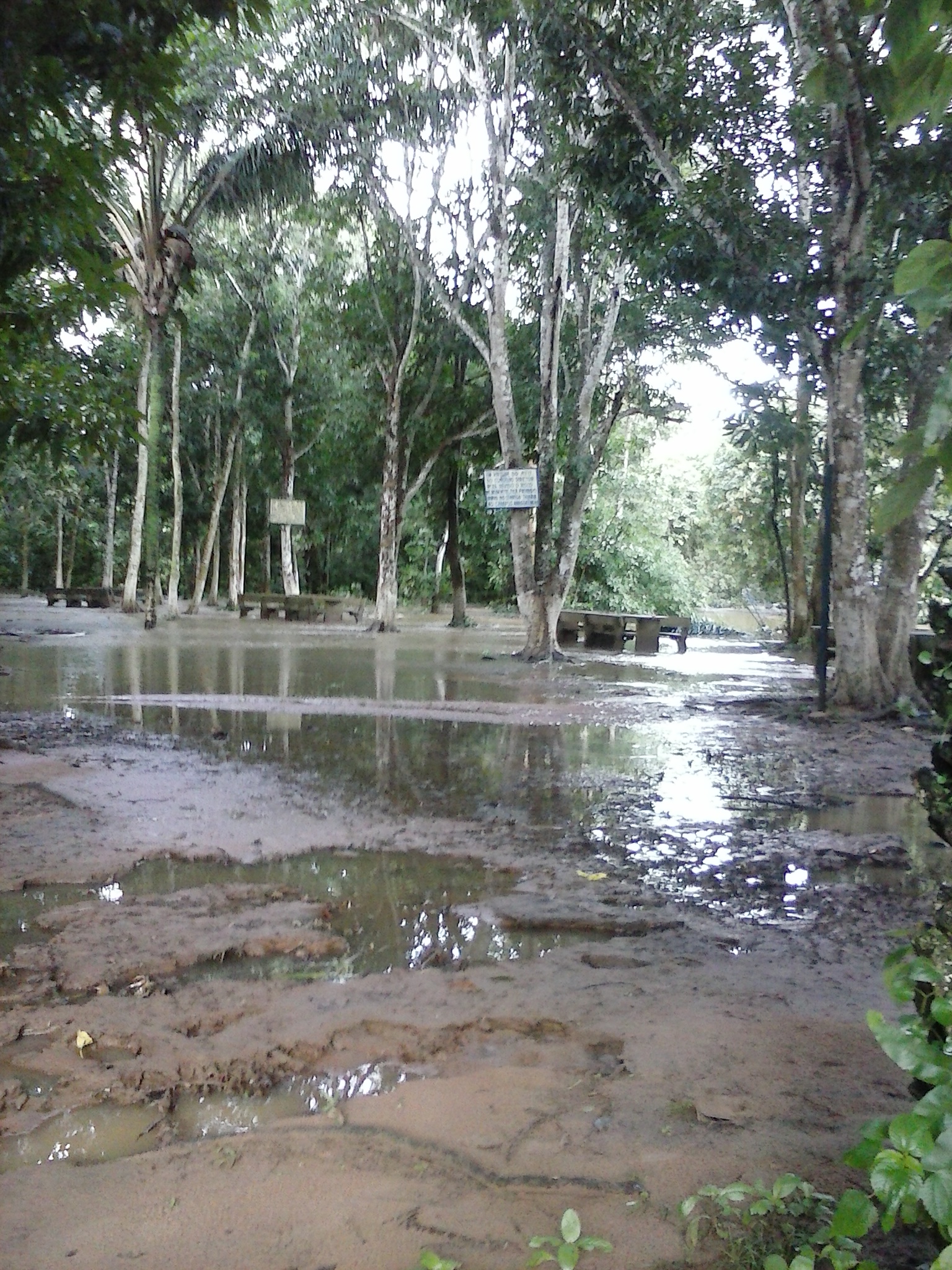 Além da chuva, a lama deixou vários equipamentos prejudicados e assustou a comunidade do campus. Parte do bosque da instituição foi invadida pela lama.