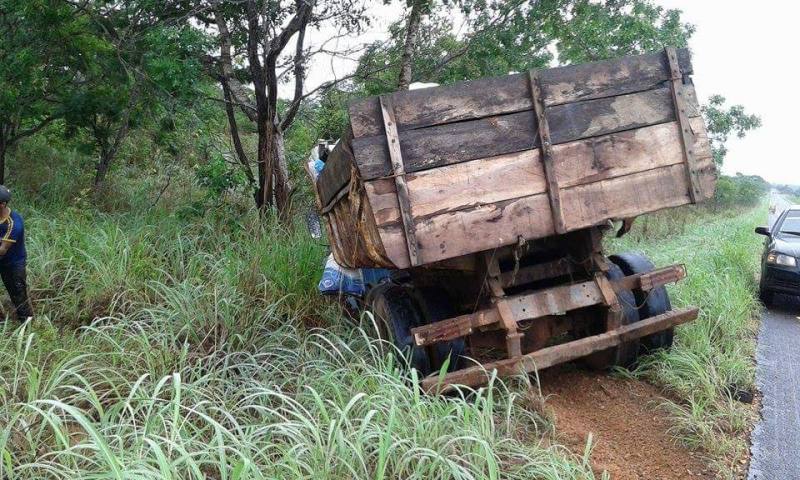 Houve danos materiais e ninguém se feriu, além do susto dos ocupantes do veículo. Por sorte, não vinha nenhum outro veículo em sentido contrário no momento do incidente. O caminhão acabou invadindo a pista oposta e parando do outro lado.
