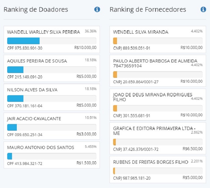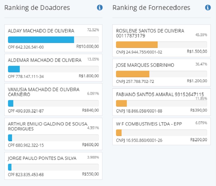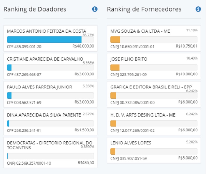 Além das declarações de despesas, os candidatos são obrigados a declararem seus doadores e fornecedores. Veja a lista de principais doadores e fornecedores dos quatro candidatos que disputam a Prefeitura Municipal de Araguatins.