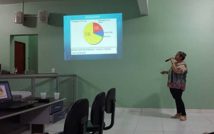 Em sua fala a secretária municipal de Saúde, Edina Veloso Gonçalves Antunes, falou sobre a situação que encontrou a pasta e as medidas que vem tomando para reverter o quadro que foi considerado preocupante. Edina fez questão de destacar questões como o surto de malária que veio a tona logo no inicio de 2017, relatando que o fato não se deve a atual gestão, mas que as medidas foram tomadas para o controle e mostrou dados atuais que comprovariam uma drástica queda e controle da situação.