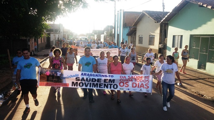 A Secretaria Municipal de Saúde de Araguatins realizou na segunda-feira, dia 13, uma Caminhada com slogan “Saúde em Movimento”. A caminhada saiu às 17h do Palácio Araguaia e percorreu as ruas 7 de Setembro e Quintino Bocaiúva até a Praça Anízio Gomes, no setor Nova Araguatins.