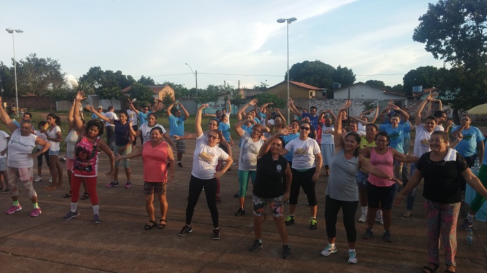 Após chegada a praça, foi aberta as atividades com a palavra do secretário municipal de Saúde, Rafael Matos; da coordenadora de Atenção Básica, Eillen Maura, e em seguida com a presença do educador físico, deu-se início a algumas atividades e exercícios.