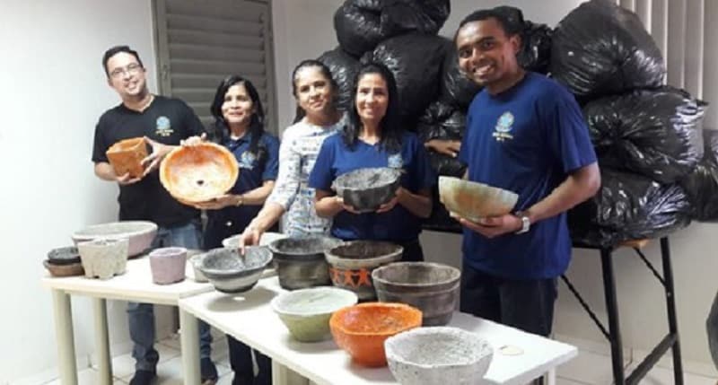 “Juntamos 170 sacos de papel picado, que resultaram do descarte anual de documentos. Uma parte foi doada para uma cooperativa de reciclagem da cidade e a outra para a confecção dos vasos. Um momento gratificante, onde podemos juntos aprender a utilizar melhor o que poderia ser jogado fora’, explicou Antônio Fábio.