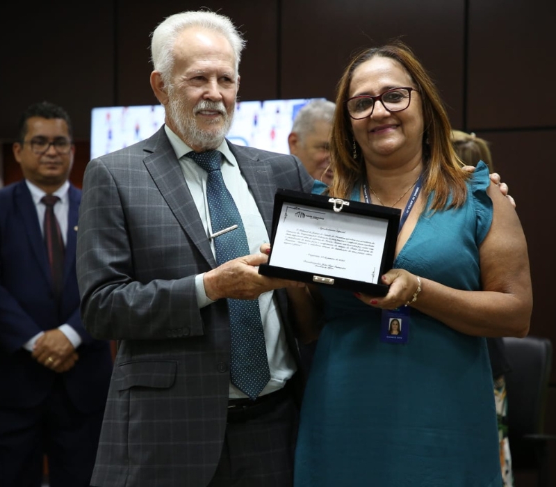 Na oportunidade, o desembargador João Rigo Guimarães entregou placa de homenagem à juíza Nely Alves pela dedicação, empenho e compromisso que contribuíram significativamente para a conclusão da obra de reforma do fórum. Também foi homenageada a servidora mais antiga, Marinete Farias Mota, representando todos os serventuários da comarca, pela dedicação às suas funções e empenho para conclusão da obra.