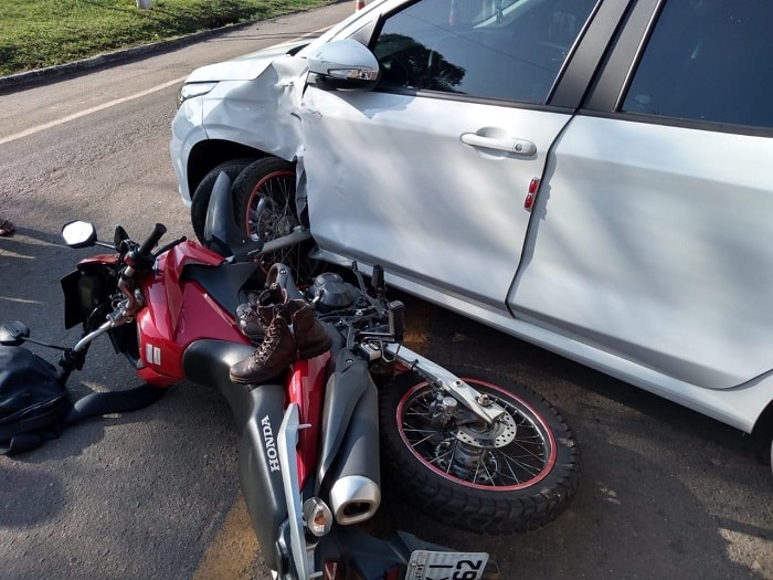 O motociclista dirigia uma moto Honda XRE 190, quando se chocou com o Fiat Argo.
