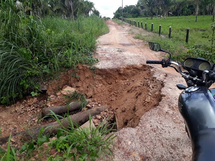 Parte da via desmoronou e tem impedido o acesso quase que total dos veículos. Apenas motocicletas passam.