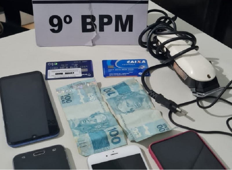 Em poder dos adolescentes a PM encontrou vários dos objetos furtados, sendo quatro aparelhos celulares de diversas marcas e vários outros acessórios subtraídos da loja de celular. Do interior da barbearia, a PM tomou conhecimento que os menores suspeitos teriam furtado R$ 500,00 em dinheiro e uma máquina de cortar cabelo.