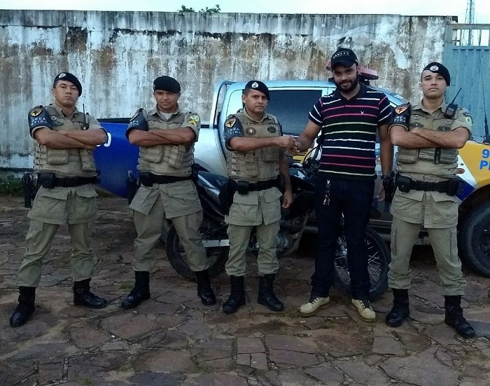 A equipe da Força Tática recebeu a missão de resgatar o veículo, após informações do Copom que recebeu uma ligação anônima informando sobre a motocicleta, que estaria sem placa em um bar no P.A. Cristo Reis. Os taticanos se deslocaram até a localidade e após interrogar Elielton Santos que é proprietário do referido bar, o mesmo informou que a moto estava em sua residência. Após permitir a entrada da equipe em seu imóvel, a motocicleta foi localizada.