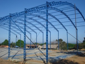Uma das mais recentes ações foi o inicio a instalação da cobertura metálica que conforme o mestre de obra que acompanha a construção, Weixodo José Soares, apartir do dia 12 de junho, estará chegando no pé da obra as telhas da cobertura de zinco e alumínio.