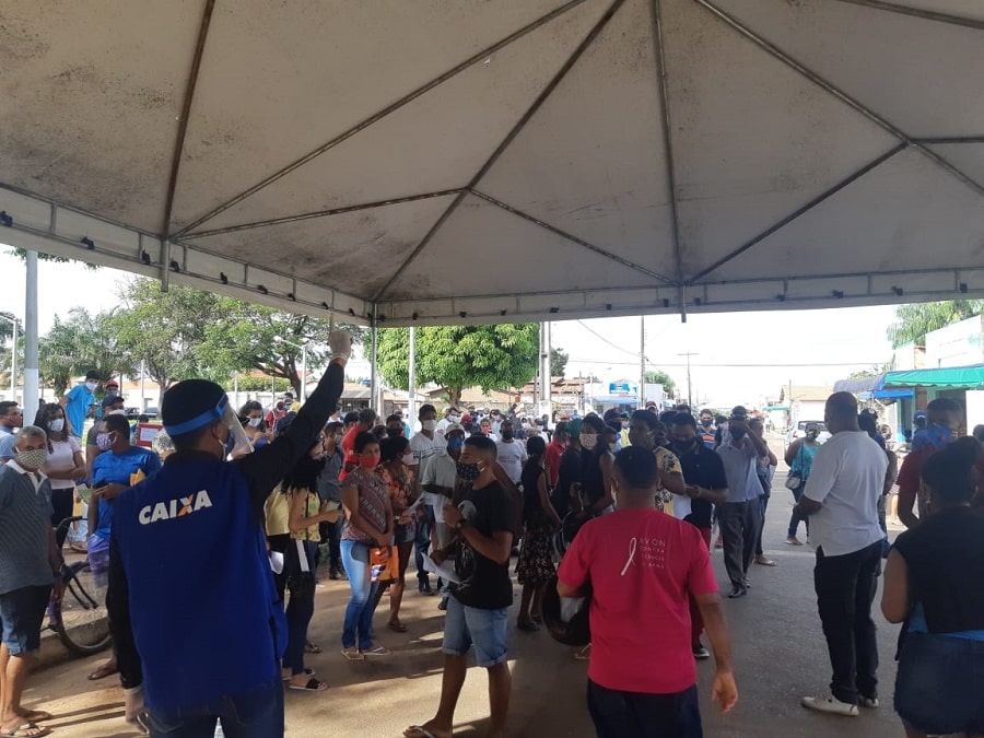 Foram instaladas tendas na frente das agências bancárias e lotérica em Araguatins, no Bico do Papagaio, nesta terça, 5, para aliviar a exposição das pessoas que estão indo as agências, em busca da retirada do auxílio emergencial de enfrentamento ao coronavírus (Covid-19).