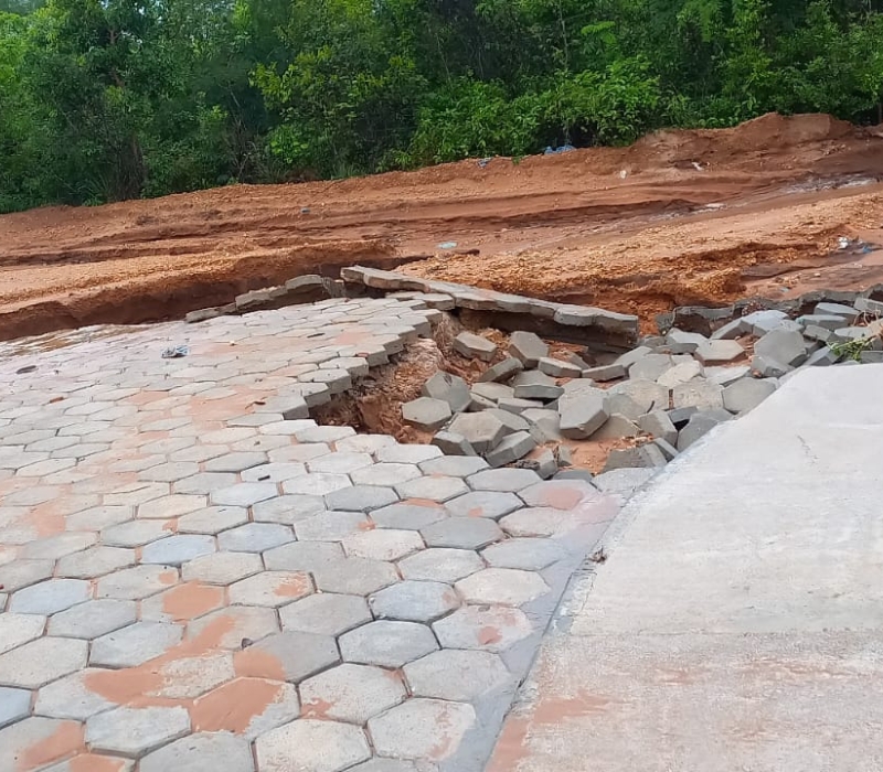 Um trecho no cruzamento das ruas Antônio Fernandes e Perimetral, no bairro Vila Madalena, na cidade de Araguatins, recentemente pavimentado pela Prefeitura Municipal, foi destruída pelas chuvas.