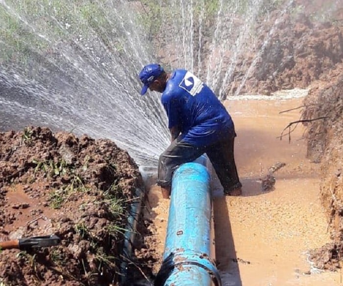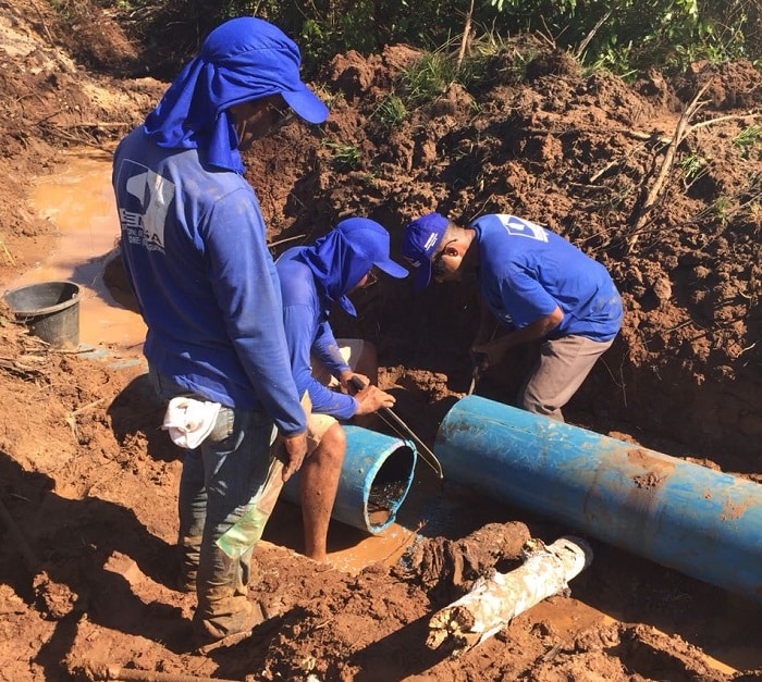 Uma adutora rompeu no final de semana em um trecho próximo a Estação de Tratamento de Água (ETA), na região do Taquarizinho. De acordo com informações do Serviço Municipal de Saneamento de Araguatins (Semusa), uma equipe técnica trabalha desde o período da manhã para resolver a situação.