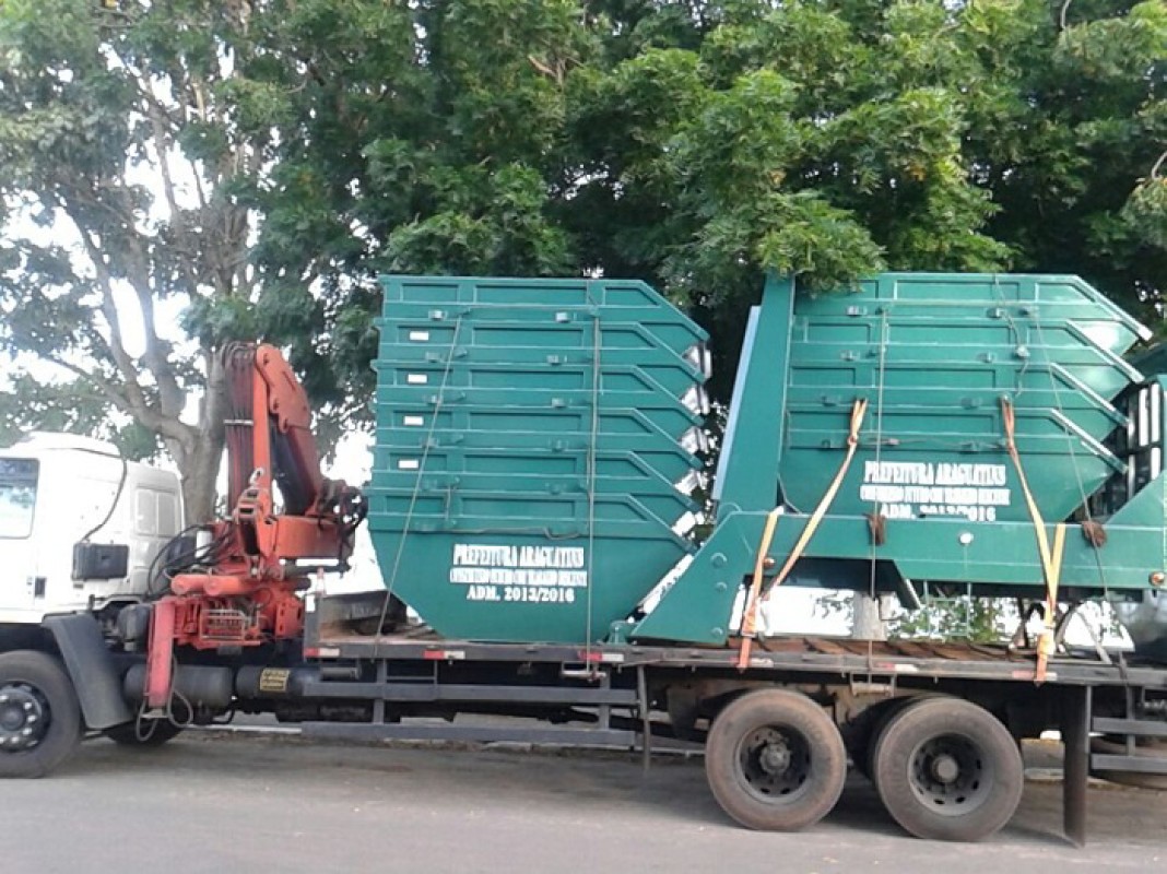 Nesta segunda-feira, 30, chegaram quase todos os equipamentos que ainda estavam em processo de licitação para funcionamento do aterro sanitário de Araguatins. Foram 15 containers caçamba, um Caminhão Volkswagen 1390 e o poliguindaste que será adaptado ao caminhão.