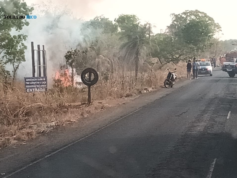 Equipes da Defesa Civil e do Corpo de Bombeiros foram acionadas para controlar o incêndio e evitar que se espalhasse pela vegetação.