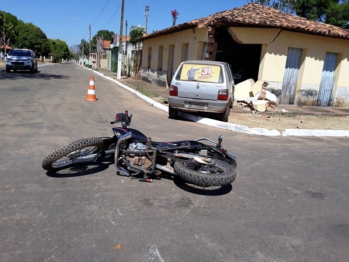 Quando nossa equipe chegou no local, ainda se encontravam a Perícia da Polícia Civil e alguns populares que informaram que o Uno tentou desviar da motocicleta que seguia pela via e acabou se chocando contra a casa. Os presentes não souberam informa quem teria provocado o incidente.