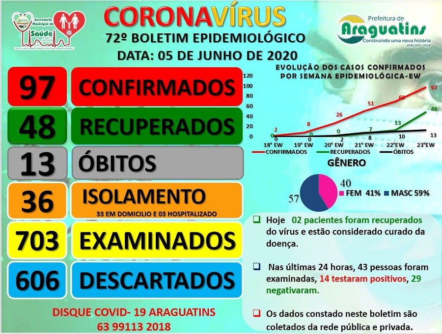 Publicidade Publicidade Bico do Papagaio ARAGUATINS: Veja os números da Covid-19 desta sexta, 5 By Folha do Bico 5 de junho de 2020 0 785 Share WhatsAppPrintTelegramFacebookTwitterCopy URL Folha do Bico Noticias Relacionadas TOCANTINÓPOLIS: UFNT abre vagas para graduação pelo SISU 2026/1 15 de janeiro de 2026 ARAGUATINS: Processo seletivo complementar da UNITINS está com inscrições abertas 15 de janeiro de 2026 ESPERANTINA: Escola Família Agrícola Padre Josimo recebe trator e fortalece ensino prático no campo 15 de janeiro de 2026 Share WhatsAppPrintTelegramFacebookTwitterCopy URL Previous articleAraguatins e Sítio Novo tem novas mortes por Covid-19 confirmadas nesta sexta, 5Next articleMedidas de enfrentamento à Covid-19 e anúncio do retorno do ano letivo marcam a semana do governador Carlesse - Advertisement - - Advertisement - Ultimas noticias SÃO BENTO: Droga e dinheiro são encontrados durante abordagem de meliante no bairro São Francisco 15 de janeiro de 2026 ARAGUATINS: Aquiles recua após conflito com DETRAN e apresenta pacote de medidas para o trânsito 15 de janeiro de 2026 Laurez é “despejado” do Palácio Araguaia 15 de janeiro de 2026 IMPERATRIZ: Prefeitura publica decreto com calendário de feriados e pontos facultativos de 2026 15 de janeiro de 2026