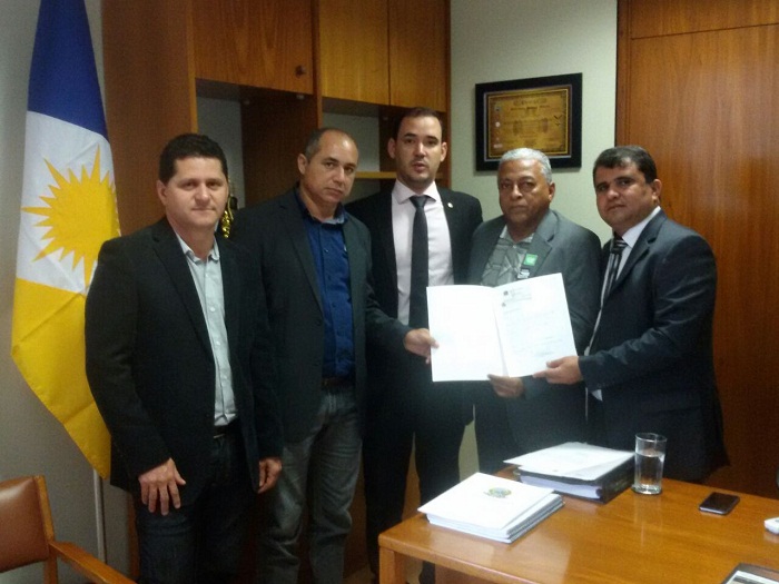 Em Brasília-DF, os vereadores de Araguatins, Jairo Ribeiro (PV), Darlan Pernumbuco (PR), Sérgio Gomes (SD) e Leocy Mora (PMDB), conseguiram junto ao deputado federal, Vicentinho Júnior (PSB), a destinação de recursos no valor de R$ 250 mil, para que a Prefeitura Municipal implante melhorias sanitárias domiciliares para prevenção e controle de doenças e agravos.