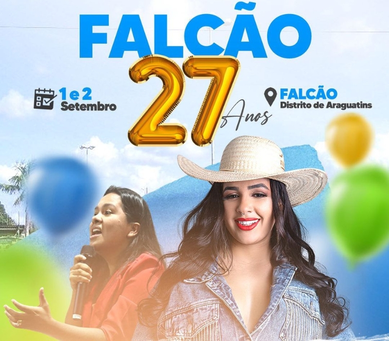 A comunidade de Vila Falcão, no município de Araguatins, no Bico do Papagaio, comemora 27 anos de criação nos dias 1 e 2 de setembro. A festa contará com shows, churrasco, atividades esportivas e a escolha da Garota Piau 2023.
