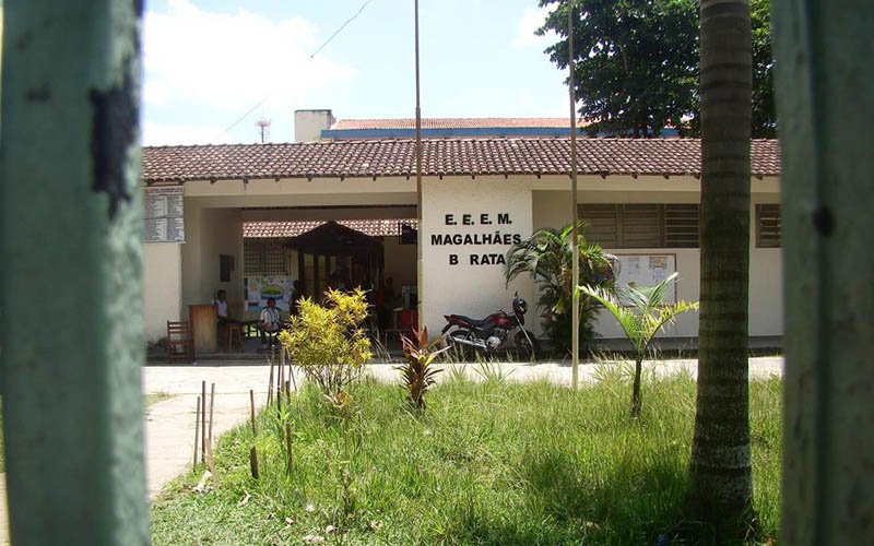 Três assaltantes invadiram a escola estadual Magalhães Barata, localizada na travessa José Pio, bairro do Telégrafo, em Belém, na noite desta quarta-feira (25).