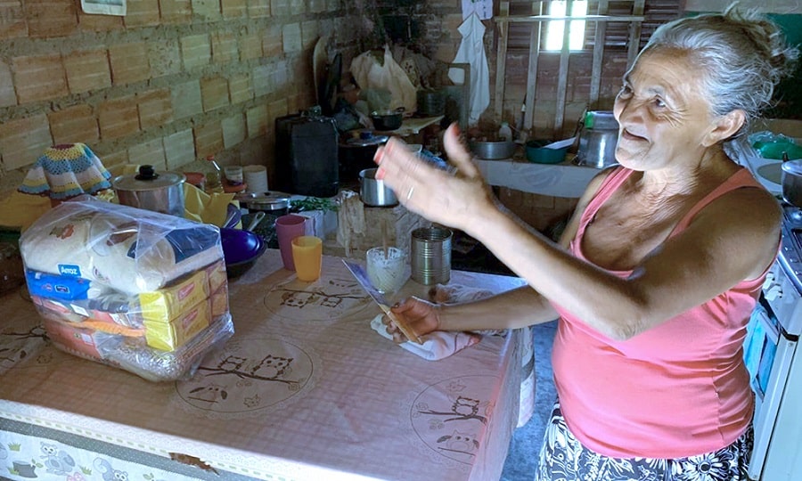 Helena Barbosa, de 66 anos, também recebeu cesta básica. “Graças a Deus, ele colocou vocês no meu caminho, muito obrigada por tudo, só tenho a agradecer essa ajuda nesse momento tão difícil”, afirmou com água nos olhos, pois sua geladeira estava vazia.
