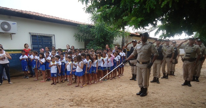O 2º tenente PM Auricélio da Cruz Sousa, comandante do 2º Pelotão Operacional Destacado na cidade de Augustinópolis, esteve na manhã desta quarta-feira, 6, juntamente com vários policiais militares realizando momento cívico na escola municipal Presidente Kennedy.
