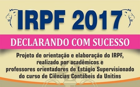 Os acadêmicos do curso de Ciências Contábeis da Universidade Estadual do Tocantins (Unitins), Câmpus de Augustinópolis realizam nos dias 24, 25 e 26 o Projeto de Extensão Declarando com Sucesso que oferece orientação na elaboração da declaração de Imposto de Renda da Pessoa Física (IRPF 2017). A atividade conta com o acompanhamento dos professores orientadores do curso. O atendimento será realizado na Casa Praxis e envolve a participação de 64 alunos e oito professores do curso.