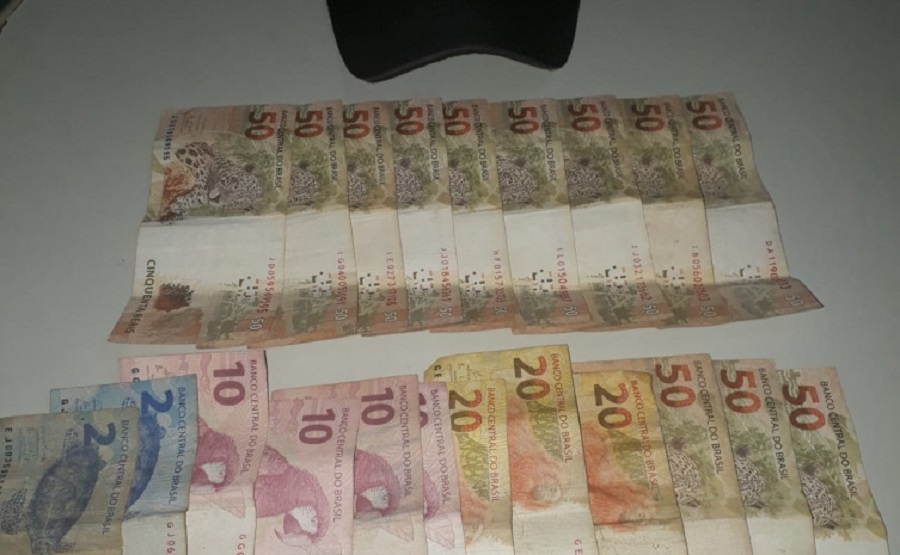 Após identificar o suspeito, a equipe em diligências localizou o indivíduo e com ele encontrou a quantia de R$704,00.