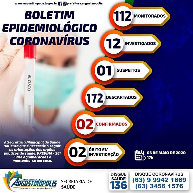 Publicidade Publicidade Bico do Papagaio AUGUSTINÓPOLIS: Boletim coronavírus deste domingo, 3 By Folha do Bico 3 de maio de 2020 0 953 Share WhatsAppPrintTelegramFacebookTwitterCopy URL Folha do Bico Noticias Relacionadas ANANÁS: Transformador trifásico é instalado, mas raio-x ainda não entra em operação 14 de janeiro de 2026 AUGUSTINÓPOLIS: PCCR da Saúde entra na pauta de negociações entre sindicato e gestão municipal 14 de janeiro de 2026 AUGUSTINÓPOLIS: Treinamento amplia resposta rápida a casos graves no pós-parto 14 de janeiro de 2026 Share WhatsAppPrintTelegramFacebookTwitterCopy URL Previous articleBR ultrapassa 100 mil casos confirmados de coronavírusNext articleARAGUATINS: Paciente de 62 anos testa positivo para coronavírus - Advertisement - - Advertisement - Ultimas noticias ARAGUATINS: Aquiles recua após conflito com DETRAN e apresenta pacote de medidas para o trânsito 15 de janeiro de 2026 Laurez é “despejado” do Palácio Araguaia 15 de janeiro de 2026 ITAGUATINS: Educação passa por reformulação administrativa e ajustes de olho na eleição estadual 15 de janeiro de 2026 IMPERATRIZ: Prefeitura publica decreto com calendário de feriados e pontos facultativos de 2026 15 de janeiro de 2026