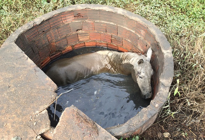 Um cavalo foi retirado de uma fossa séptica na manhã desta segunda-feira, 26, na cidade de Augustinópolis. O animal pastava pelas ruas do centro da cidade e ao se posicionar sobre a tampa da fossa, ela não suportou o peso e quebrou