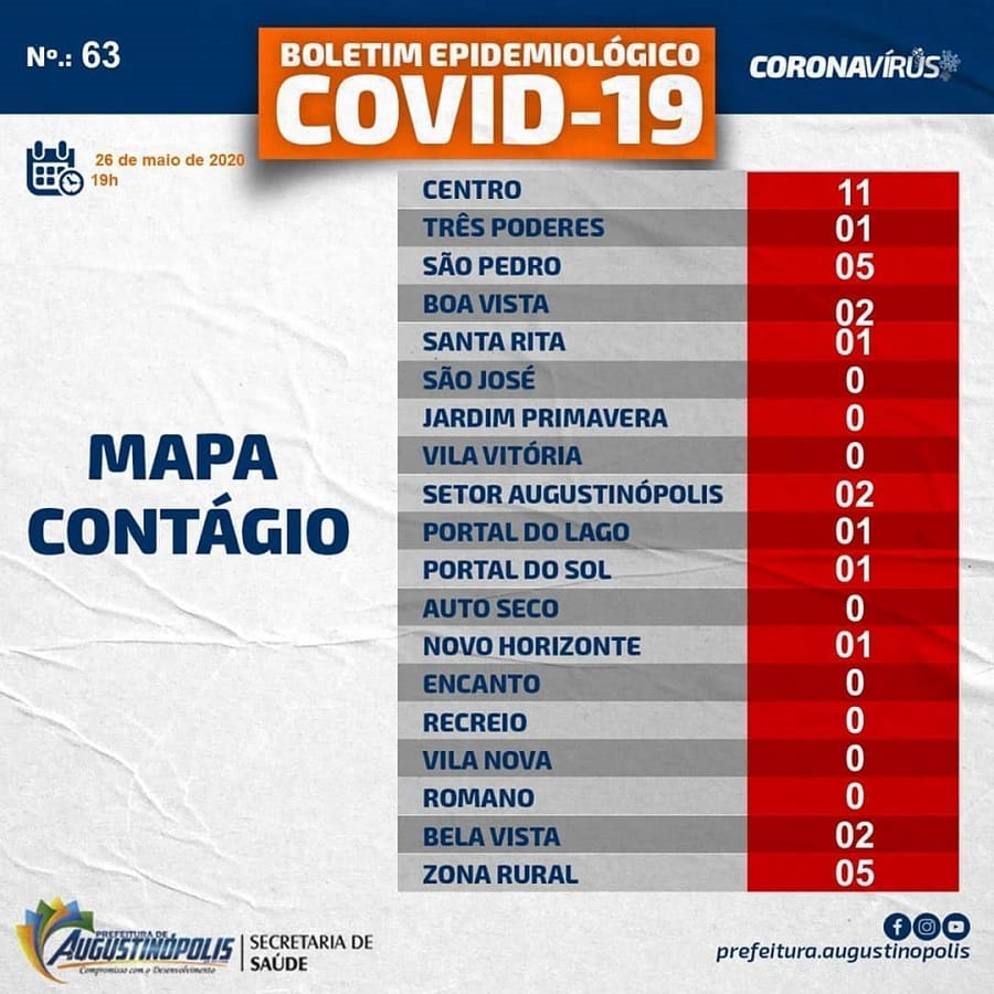 O Centro da cidade acumula 34% dos casos de Covid-19, em Augustinópolis, no Bico do Papagaio. Ao todo, são 11 ocorrências, das 32 registradas até esta terça, 26.