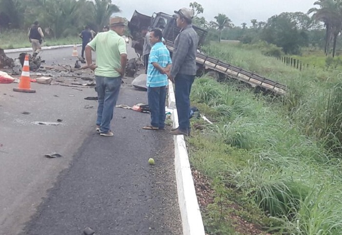 Um casal morreu na batida entre seu veículo um Chevrolet Corsa com um caminhão. O corsa teve sua metade dianteira arrancada, o condutor e a passageira morreram no local e os corpos ficaram no asfalto aguardando providências do Instituto Médico Legal (IML). Já o caminhão saiu da pista e seu ocupante teve apenas ferimentos.