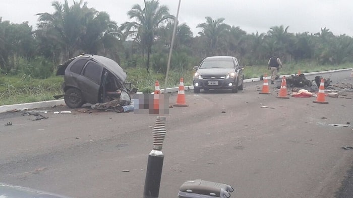 Um casal morreu na batida entre seu veículo um Chevrolet Corsa com um caminhão. O corsa teve sua metade dianteira arrancada, o condutor e a passageira morreram no local e os corpos ficaram no asfalto aguardando providências do Instituto Médico Legal (IML). Já o caminhão saiu da pista e seu ocupante teve apenas ferimentos.
