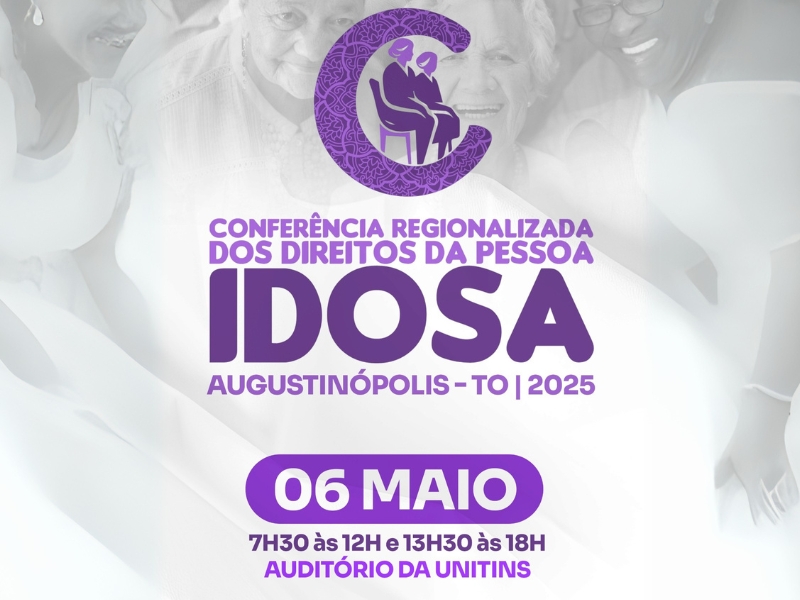 A cidade de Augustinópolis, no Bico do Papagaio será palco, no próximo dia 6 de maio, da Conferência Regionalizada dos Direitos da Pessoa Idosa, promovida pela Prefeitura por meio da Secretaria Municipal de Desenvolvimento Social e Habitação. O evento acontecerá de forma presencial no auditório da Universidade Estadual do Tocantins (Unitins), das 7h30 às 12h e das 13h30 às 18h.
