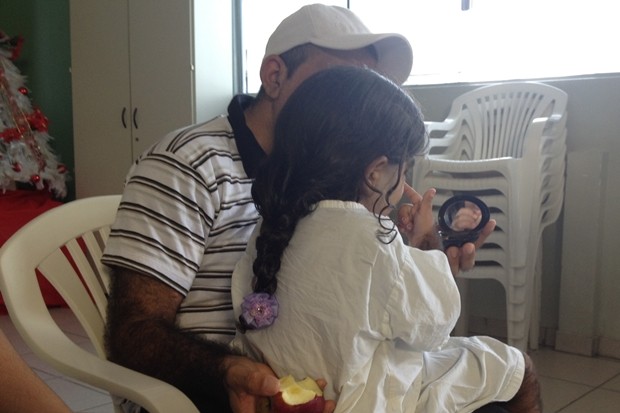 A menina Kemilly Vitória Pereira de Souza, de 2 anos e 8 meses, que tem o corpo coberto por pelos, fez a segunda sessão de laserterapia na quinta-feira (19), Hospital Materno Infantil (HMI), em Goiânia. Pela primeira vez, a garota se viu no espelho com o rosto totalmente livre dos pelos. A menina sorriu e tocou por várias vezes a face. A mãe da criança, a dona de casa Patrícia Batista Pereira, de 22 anos, chorou de emoção ao ver o rosto da filha após o precedimento: “O que eu mais queria era ver o rostinho dela assim. É um sonho realizado”.