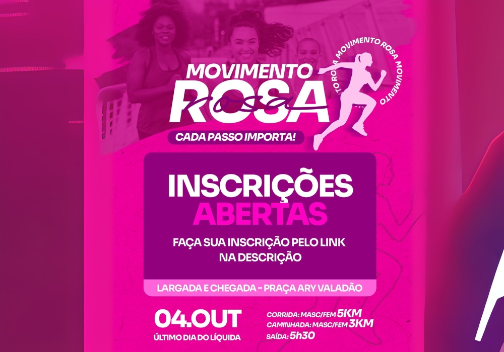 Com o slogan “Cada passo importa”, a gestão municipal reforça o compromisso em unir bem-estar e solidariedade em prol da saúde da mulher. Interessados podem garantir participação por meio do link de inscrição: clique aqui.