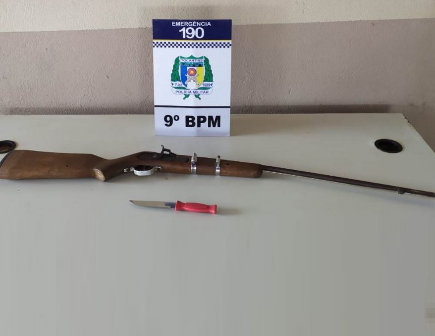 Segundo o suspeito, a faca e a espingarda eram de propriedade de seu pai e foi tomada da vítima na hora da confusão. A espingarda estava escondida e foi entregue a PM.
