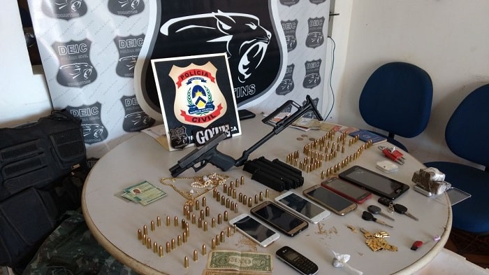 Segundo a polícia, ao logo das investigações foi descoberto que o suspeito estaria planejando um assalto a um banco em Augustinópolis. O suspeito foi detido em uma residência do município, onde foram encontradas drogas, uma arma, munição e cerca de R$ 4 mil. Também foram apreendidas algumas notas de dinheiro estrangeiro, joias, seis aparelhos celulares, um colete a prova de balas, documentos falsos e um carro.