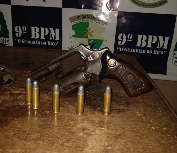 Os policiais militares receberam denúncia de que havia um homem em um bar armado de revólver. Em poder do suspeito a PM encontrou a arma municiada com 4 munições. Um cartucho intacto foi encontrado no bolso do autor.