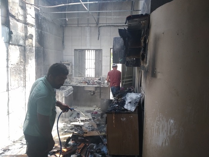 O incêndio teria sido causado pelo botijão de gás e as chamas atingiram a secretário do lar, que teve queimaduras e foi levada para atendimento no Hospital Regional, mas não corre risco de morrer.
