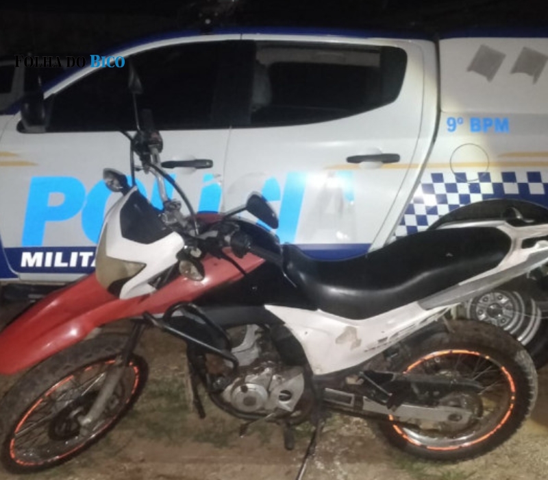 O suspeito conduzia uma motocicleta Honda/Bros, de cor vermelha, com uma placa pertence a outro veículo, da mesma marca e modelo, sendo na cor preta.