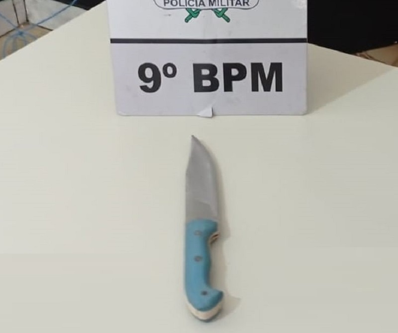 Equipe de policiais militares do 9º Batalhão (9º BPM), realizava patrulhamento quando foi procurada pela vítima, mulher de 53 anos, onde relatou à PM que o autor, por motivos desconhecidos, armado com uma faca, havia invadido a sua residência e ameaçando as pessoas ali presentes de morte.